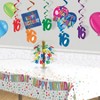 Choose your milestone birthday whirl. These whirls come in assorted colors of red, orange, green, blue, and purple. Each hanging whirl measures 36 inches long. They are made of metallic plastic.
