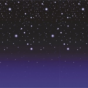 Create a scene on your wall with this great looking backdrop! The starry night backdrop is printed on thin plastic that measures 4 feet tall by 30 feet wide. Tape can be used to attach it to a wall.