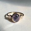 A dreamy mood ring set with an oval color changing mood stone in between two moonstones. This is our grown up version of the classic mood ring with a whimsical vibe. Gorgeous and when worn solo or the perfect compliment when stacked with multiple rings. Mood stone measures 10mm tall.
