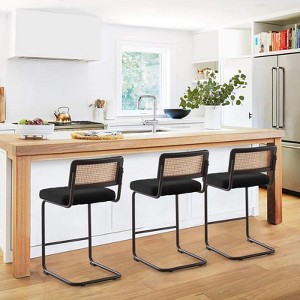 Bekrvio 26" Counter Height Bar Stools - Rattan, Velvet Upholstered with Cane Back & Metal Frame, Mid Century Modern Kitchen Stools for Counter Island