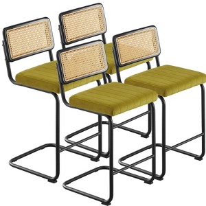 Bekrvio 26" Counter Height Bar Stools - Rattan, Velvet Upholstered with Cane Back & Metal Frame, Mid Century Modern Kitchen Stools for Counter Island