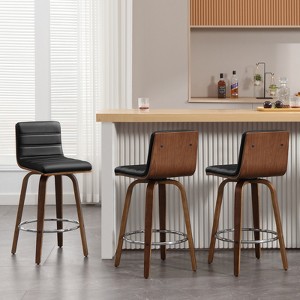Bekrvio 26"/29" Swivel Counter Height Bar Stools Set of 3,Mid-Century Modern PU Leather Upholstered Kitchen Counter Pub Chairs