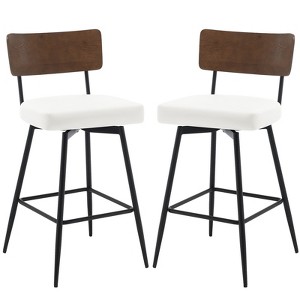 Bekrvio 29" Counter Height Swivel Bar Stools Set of 2/3 - Upholstered Faux Leather, Wood Backs & Metal Legs, Counter Stools for Kitchen Island