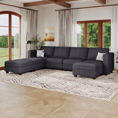 - Maximize small spaces with discreet under-seat compartments in each module. Each 35.8x35.8 ottoman stores throw blankets (up to 4), board games, or remotes, keeping your living room clutter-free without sacrificing style.