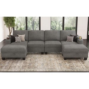 Belffin U-Shaped Chenille Modular Sofa - 6-Seater with Hidden Storage & Tool-Free Assembly