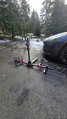 This Bell Rightup 270 bike platform hitch rack offers a sturdy and easy solution for transporting up to two bikes (up to 70 Ibs each) on the back of your vehicle. Comes well packaged and with an instruction book that was helpful with step by step installation and drawings. Steps could have been more specific but pictures were great. Assembly wasn't quick for me and my 11yo son who wanted to help. It took about an hour for us to assemble the rack, but once it was all assembled, it was easy to figure out how to adjust the long and short hooks to fit the bike and secure it onto the hitch rack by simply untightening and tightening the red knobs and moving the hooks to fit the bike. I liked that the long hooks were labeled with "L" for the left side and "R" for the right side. Disassembling the hitch rack was really quick and easy once we got the hang of twisting the red knobs. My only recommendation would be to offer extra screws and washers as these can easily get lost with how many times you'll be loosening and tightening the red knobs. We don't have a truck so we'll need to install a tow hitch to the back of our van before we can use this hitch rack. Note that this hitch rack is only compatible with a 2 inch hitch receiver. Overall, great quality materials, sturdy, and worth the value.
