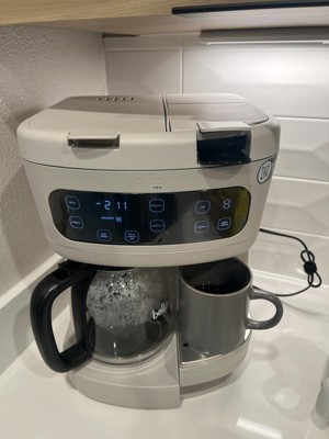 Bella PRO Multibrew 12 cup drip & single serve coffee maker- oatmeal . It works fast and you can use k cups! Just a little difficult but once it fits right it’s great!