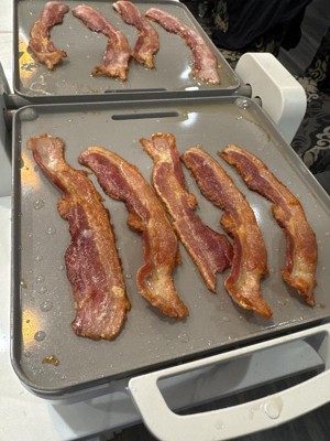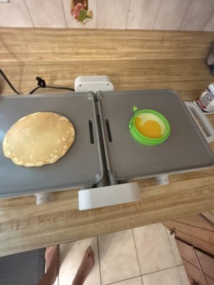 This griddle has received enthusiastic praise for its ease of use and cleaning, making it a favorite for cooking pancakes, bacon, and other meals. Guests appreciate its compact design, which fits well in smaller kitchens, and its quick heating capabilities. While some noted minor issues with heat distribution and the grease trap, the overall sentiment is overwhelmingly positive, highlighting its practicality and stylish appearance.