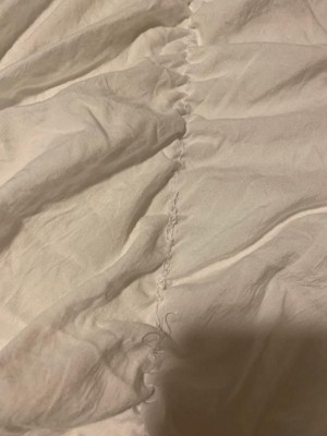 So cute I love it! Kind of wish I would have gotten Ivory because it is very very white. The only reason I took stars off is because the stitching is messed up all over the comforter (pictures below). It’s not horrible but for over $100 I’d expect a bit more quality. I’m too impatient to return it for a new one.