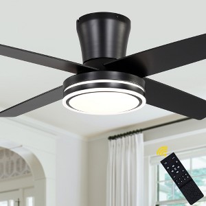 Bella Depot 44" Modern Flush Mount Black Ceiling Fan with LED Light Low Profile Fan Light