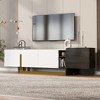 Elevate your living space with our Light Luxury TV Stand, designed to blend seamlessly into contemporary interiors. Boasting a sophisticated combination of bright white surfaces with classic wood grain accents and elegant metal legs, this TV cabinet is not just a furniture piece but a statement of style. With ample storage solutions including a spacious drawer and two closed cabinets with adjustable shelves, it’s perfect for organizing media devices, books, and décor. Crafted from durable MDF, it promises stability and long-lasting performance, making it a smart addition to any room in your home.
