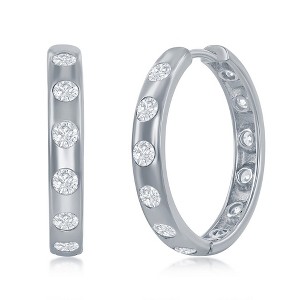 Bella Silver Sterling Silver 25mm CZ Hoop Earrings - Silver - 1 of 2