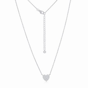 Bella Silver Sterling Silver, Micro Pave Heart CZ Necklace - Silver - 16+2 Inch