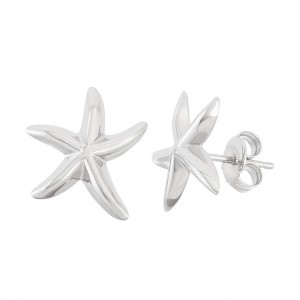 Bella Silver Sterling Silver Shiny Starfish Stud Earrings - Silver - 1 of 2