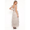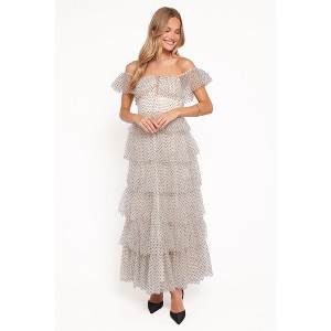 Be the belle of the ball in this stunning maxi dress! Featuring a square neckline with tie close, thin elasticized straps with ruffle detail and a front cut out on the bust, this dress is sure to turn heads.