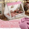 Bellemave Full House Floor Bed with Tent and Light,Solid Wood Floor Bed Frame with Guardrails, Montessori and Childlike Design, White+Pink