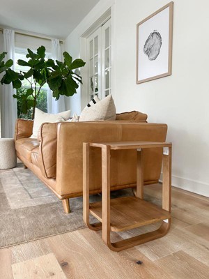 With soft bent-wood legs and two open tiers, Bellwood brings a warm and airy touch to your living room, bedroom or entryway. This versatile side table seamlessly accompanies your space to provide multipurpose storage. Its two tiers allow you to store plants, decor, remotes and more. Holds up to approx. 200lbs (90.7 kg). Part of Umbra' s Bellwood Family including a coffee table, umbrella stand, storage side table, wall shelves, freestanding shelf, and over the toilet shelf. Because wood is a natural finish, every Bellwood Side Table may slightly differ in grain. *For best care: use coasters to avoid direct contact to wood surfaces and if you experience a spill, wipe with a damp clean cloth immediately. Wipe surfaces with water only using a damp clean cloth. For assembly, place a level on the floor in upright position and slightly loosen all the screws. Adjust the legs and table top so that they are level to the floor and retighten the screws.