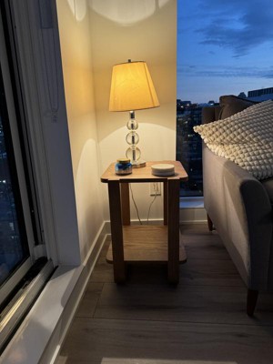 Love this! It looks gorgeous in my room. The wood is warm and cozy at night but bright in the sunlight. The quality is so great and it was so easy to assemble. Perfect height for a couch side table.