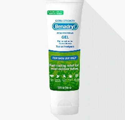 - Benadryl Extra-Strength Anti-Itch Topical Analgesic Gel for relief from minor skin pain & itching
