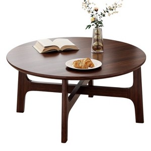 Product Name: SEVOBAL Coffee Tables, Round Coffee Table with Tabletop and Cross Frame for Living Room, Hallway, Brown, 39.3"*39.3"*17.7"