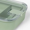 This Bento Food Storage Container from Figmint™ is a convenient way to store a variety of meals and snacks. Crafted with 80% recycled PET, this 4.3-cup sage green bento container comes with a plastic lid to help keep foods fresh for longer. Freezer safe for longer-term storage, it's also dishwasher safe on the top rack and microwave safe for reheating without the lid.