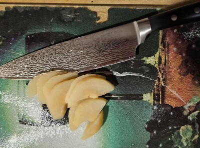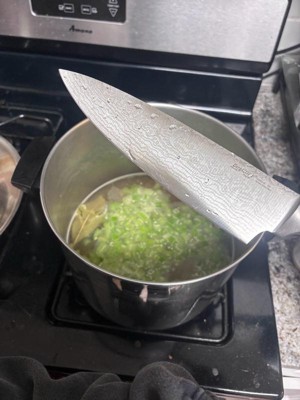 [This review was collected as part of a promotion.] This is a nice knife! I like the design on it a lot. It is pretty sharp and chopped veggies very well. The weight was fine and I felt it was easy to use!