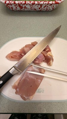 [This review was collected as part of a promotion.] This is a beautiful knife. It was nice and sharp right off the bat. My boyfriend does a lot of our cooking and he was really impressed when using it to slice through meat and found it to be very balanced. We would definitely get more of these in the future