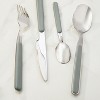 This flatware set combines a sleek design with a subtle colored handle, ideal for brightening up your everyday table setting. Crafted from high quality polished stainless steel, this 24 piece flatware set consists of 6 dinner forks, 6 dinner knives, 6 dinner spoons and 6 teaspoons