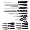 Includes: Chef Knife, Santoku Knife, Bread Knife, Utility Knife, Paring Knife, Steak Knife, Knife Sharpener, Shears, Paring Knife, Knife Block