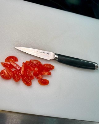 [This review was collected as part of a promotion.] I definitely needed a good paring knife. This is now the sharpest knife in my knife drawer! It slices perfectly through tomatoes without squishing any juice out. It’s versatile and worked well for cutting cheese and meat too. The handle fits well in my hand and is smooth and solid with some weight to it. None of my other paring knives weigh as much as this one. I’m very happy with this knife and use it the most.