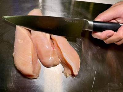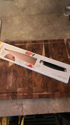 [This review was collected as part of a promotion.] I had high hopes for this knife based on reviews and the product details I saw about it. However, after one use, it had rust stains on the blade which makes no sense. The product raves about the quality and how rust resistant it is, but unfortunately that’s not my experience. What I do like is how beautiful it looks and the ergonomic and sleek handle which is comfortable to use. Other than that, even the performance of it trying to cut a chicken breast was disappointing. It doesn’t even cut through all of the parts of the chicken breast easily. I unfortunately can’t recommend this knife.