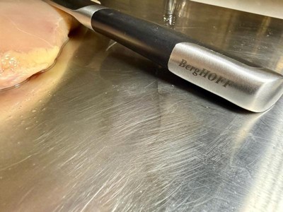 [This review was collected as part of a promotion.] BergHOFF Leo Graphite Carving Knife features a 8" stainless steel blade that makes slicing meats fast and easy. The handle is comfortable to grip, and the knife is easy to control. The sharp thin blade makes it easy to slice precisely.