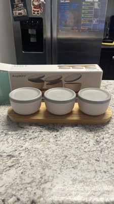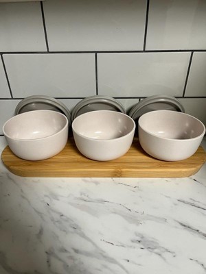 BergHOFF LEO 4Pc Bowl Set And Bamboo Tray, 0.29qt. Each, White