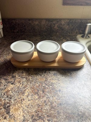 [This review was collected as part of a promotion.] Thins little appetizer set is so great when I have friends over. Or even if I have some appetizers that I want to take to a friends house. I love the design with the bamboo underneath the bowls, and that the bowls themselves have lids. You can put a decent amount in the bowls. My little niece also likes to use the bowls for snacks. Definitely a must have if you’re a snacker or you have company often.