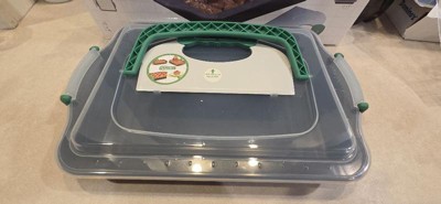 [This review was collected as part of a promotion.] It's a very nice, sturdy pan. The lid has a strong snap, but still easy enough to open. I like the perfect slice cutting tool. I don't have to bring along a knife or cut it ahead of time, which van dry it out.