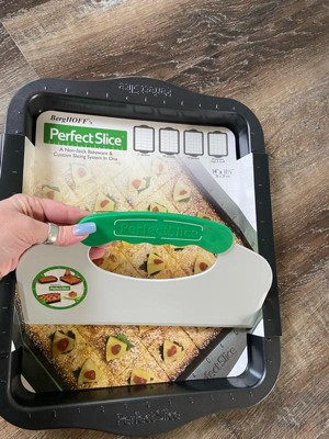[This review was collected as part of a promotion.] I received this product free from @influenster and @berghoffusa in exchange for my honest review. The BergHOFF Perfect Slice 9" x 13" Covered Cake Pan with Slice Tool is well-made and extremely convenient. The non-stick carbon steel pan heats evenly and is oven safe up to 425°F. I love the patented grid lines, which make it easy to cut straight, uniform slices using the included slicer. Each piece comes out clean and evenly sized. The non-toxic nonstick coating allows baking with little to no oil, and cleanup is easy since it’s dishwasher safe. The cover also makes it great for transporting baked goods. Overall, this is a practical and high-quality addition to my cookware.