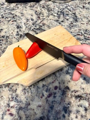 [This review was collected as part of a promotion.] This knife is sharp and easy to use. I used it to slice a radish, which I would usually use a mandolin for and it handled easily and created crisp, quick cuts. It cleans easily, and it will be my go to knife in the kitchen!