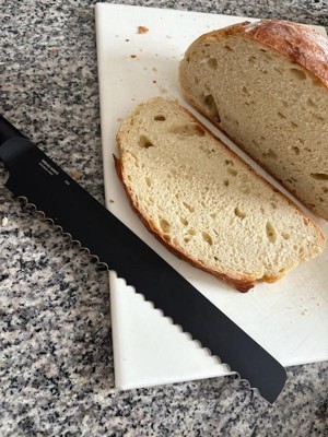 [This review was collected as part of a promotion.] The knife works quite well. The weight and feel of the knife is good and not too heavy. The longer length is handy for cutting larger loaves, but it does make it a little more unwieldy for smaller loaves. The black finish seems to be holding up well and cleaning it is quick and easy!