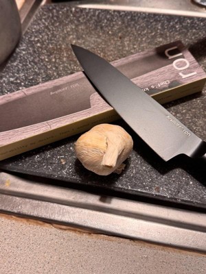 [This review was collected as part of a promotion.] The BergHOFF Ron chef’s knife stands out with its sleek iron-black design, giving a luxurious and modern feel. The blade is exceptionally sharp, allowing for smooth, thin slices with great precision. The handle feels solid and secure in hand, well-balanced, and comfortable even during extended use. It’s an excellent choice for both home cooks and those who appreciate professional-quality kitchen tools. Stylish, sharp, and built to last.