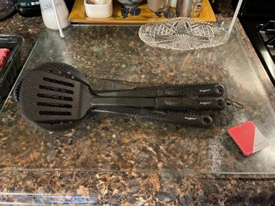 [This review was collected as part of a promotion.] ✨BergHOFF 5Pc Nylon Cooking Utensil Set. This cooking utensil set is lightweight and aesthetically appealing; the black color makes it stain resistant. They are great to use on your nonstick cooking pans. The name of the brand at the end in white color gives it that nice touch. The handle feels nice to hold, and the ridges on the spoon and the indentation on the back give you a better grip to hold the spoon while cooking. They also have a hole on the end for hanging if you prefer. This is a basic tool set that is flexible but sturdy that I need for everyday use. This set includes a Skimmer, Slotted Turner, Slotted Spoon, Solid Spoon, and Ladle—all the utensils I need. They are easy to clean and well made. They have no problem handling heat; the spoon says it can handle up to 210°C. This is a great set at a reasonable price that I highly recommend. As you can see in my video, I put it to the test to see how sturdy it is, and it passes the test.
