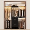 Transform Your Wardrobe with Our Versatile 4FT Adjustable Closet Organizer. Reclaim control over cluttered closets with this intelligent storage solution that adapts to your space and lifestyle. At 4 feet wide, this organizer features trimmable side panels and telescopic hanging rods that customize to your closet's exact dimensions, delivering a built-in look without permanent renovation. The four-rod hanging system maximizes vertical capacity: one dedicated long-garment section keeps dresses, coats, and suits wrinkle-free, while three short hanging space diver your storage for shirts, blouses, and folded pants. Complementing the hanging areas, three fabric drawers provide concealed, dust-free storage for sweaters, accessories. Designed for expansion, you can seamlessly connect two units for an 6.5-foot wall or integrate with other closet systems to create a personalized wardrobe layout.