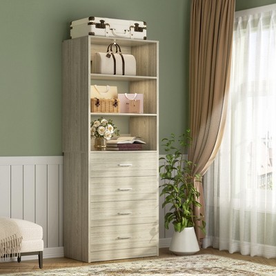 Besiost 4-9 Ft Wooden Closet Organizer System with 4 Drawers, 4 Hanging Rods & Shelving Towers