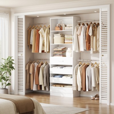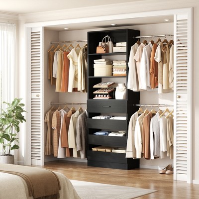 Besiost 4-9 Ft Wooden Closet Organizer System with 4 Drawers, 4 Hanging Rods & Shelving Towers