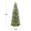 The Frosted Scotch Pine Christmas Tree brings the beauty of winter indoors with dense, crown-like foliage featuring frosted tips for a festive, snow-dusted look. Hundreds of 2-in-1 white and multicolor LED lights offer nine lighting functions, easily controlled by a foot switch, creating a vibrant holiday display. Its slim, space-saving profile makes it ideal for entryways or as a centerpiece in any room. With a simple, cordless 3-step assembly, setting up and fluffing the tree is a breeze. The tree's full appearance and abundant branch tips provide ample space to showcase your ornaments and holiday decor.