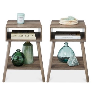 Best Choice Products Set of 2 Mid-Century Modern End Tables w/ Cubby Storage, Lower Shelf, Offset Legs - Gray Oak