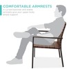 Outdoor seating is a seasonal essential, so seats that last are a must-have. These Wicker Steel Chairs are built with durable, weather-resistant wicker and steel to resist the elements. All-weather wicker wrapped around a steel frame with powder-coated armrests to create one or, in this case, two, durable packages. Made lightweight with a convenient stacking design for quick and easy storage and built with a curved backrest to support the back and armrests for added comfort. The tasteful faux wicker complements your outdoor setup, and multiple sets are great for company! Best of all, assembly is a breeze: Step 1 Attach the seat to the backrest, Step 2 Attach the right armrest to the seat and back, Step 3 Attach the left armrest to the seat and back. And don't forget step 4: enjoy yourself!