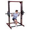 A solid steel, knurled Olympic barbell slides smoothly down the BFSM250’s carriage without resistance for safe and controlled movements. Use the 2” barbell sleeves to add up to 300 lbs. of additional weight to the barbell for intense workouts. Heavy-duty, adjustable safeties let users customize the Best Fitness Smith Machine for several of the most popular exercises, including bench presses, squats, shrugs, rows and more.