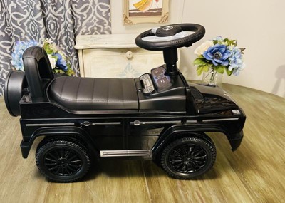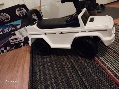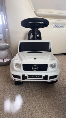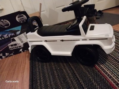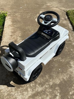 [This review was collected as part of a promotion.] "My grandson is absolutely thrilled with his Mercedes G-Wagon Push Car in White! As his grandma, I have to say, it was a breeze to assemble – everything we needed, including stickers, was included. The coolest feature? The horn, powered by 2 AA batteries (not included), which emits fun sounds that he adores. But what truly impresses me is its functionality. The steering wheel allows him to maneuver effortlessly, aiding in his walking development. And let's not forget the hidden trunk under the seat – his favorite spot to stash all his toys! I love that it's versatile enough for both indoor and outdoor use, thanks to its heavy-duty plastic wheels that never go flat or scratch my floors. Plus, its durability means it can withstand even the roughest play sessions. This push car has quickly become his go-to toy, keeping him happily entertained for hours on end. It's safe to say it's a winner in our household!"