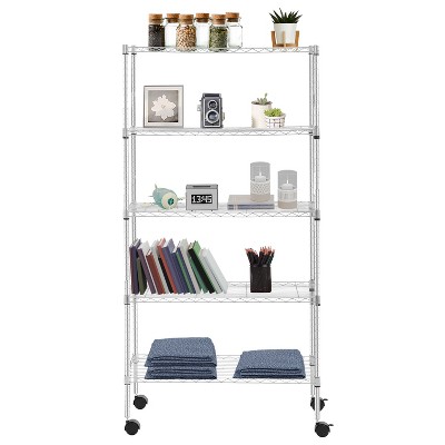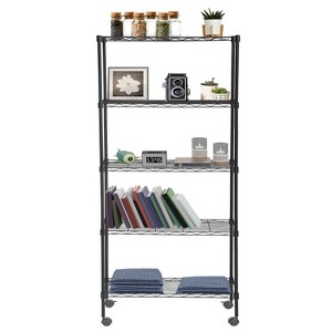 BestMassage 5-Tier Heavy-Duty Wire Shelving Unit Metal Shelving Unit with Adjustable Shelves & Lockable Wheels for Garage Home Kitchen, Black