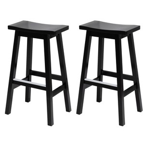 BestMassage Bar Stool Set of 2 Solid Wooden Saddle Bar Stools 24/30 Inch Height Home Furniture - 1 of 4